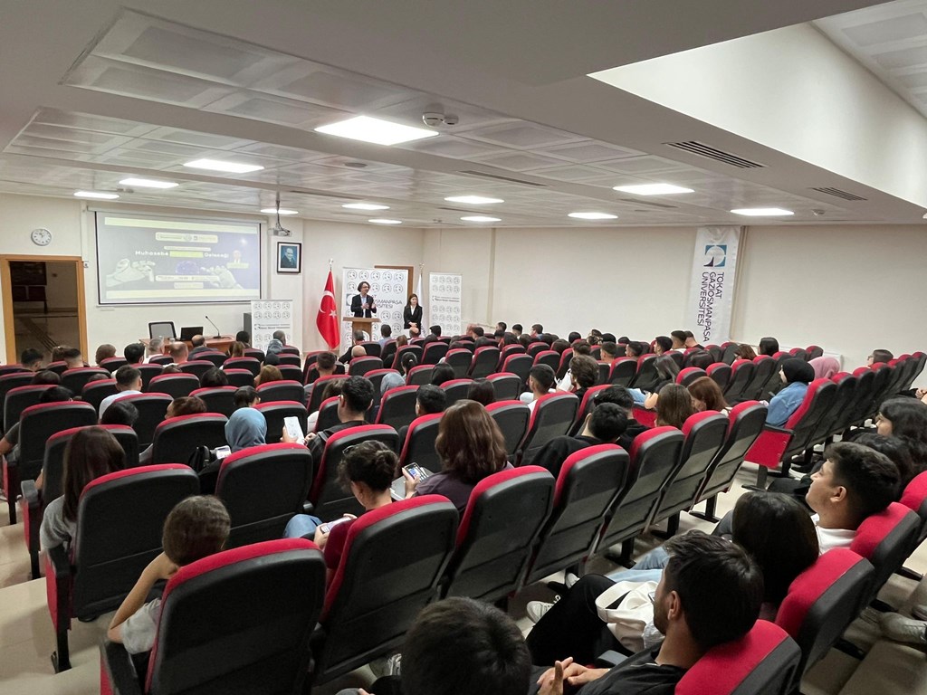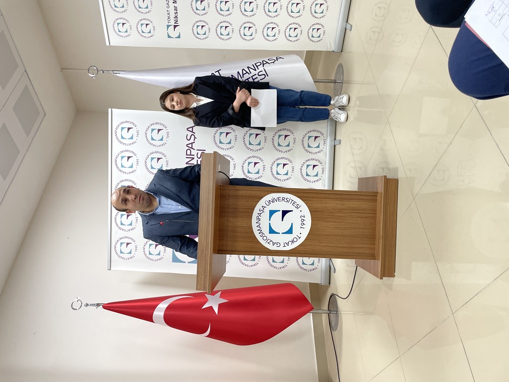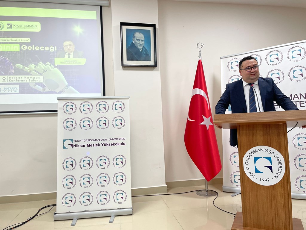 Kıymetli misafirimiz, Tokat Serbest Muhasebeci Mali Müşavirler Odası Başkanı Mustafa Kaya, muhasebe mesleğinin güncel gelişmeleri, dijital dönüşüm süreci ve meslek mensuplarının gelecekteki rolü hakkında katılımcılara bilgi verdi. Kaya, öğrencilere meslek yaşamında başarılı olmanın anahtarının sürekli öğrenme, etik değerlere bağlılık ve teknolojiye uyum olduğunu belirtti.